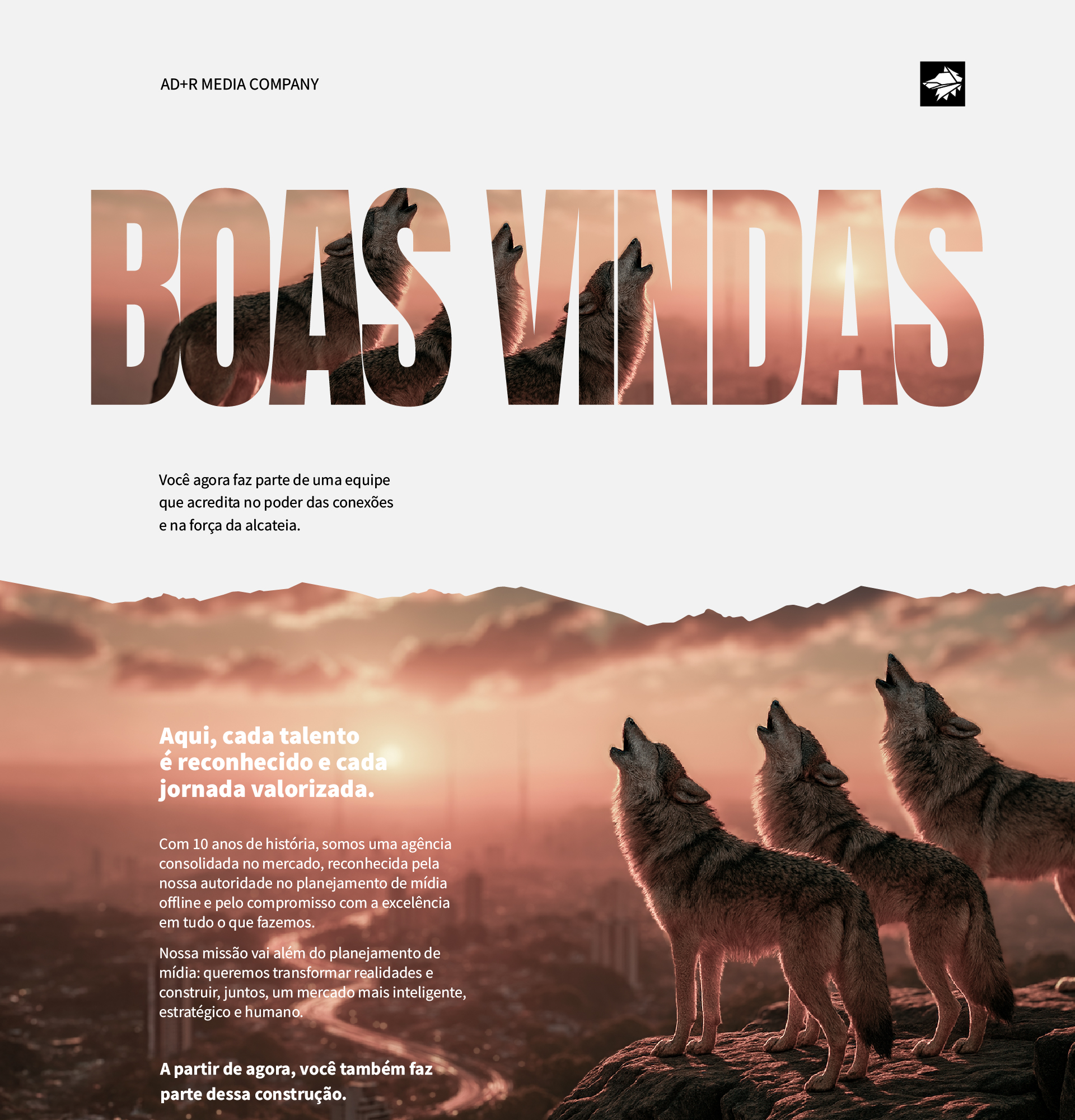 Apresentação institucional desenvolvida para a AD+R com foco na integração de novos colaboradores, reunindo informações sobre a empresa, sua cultura, estrutura e direcionamentos internos de forma clara, organizada e visualmente coerente com a marca.