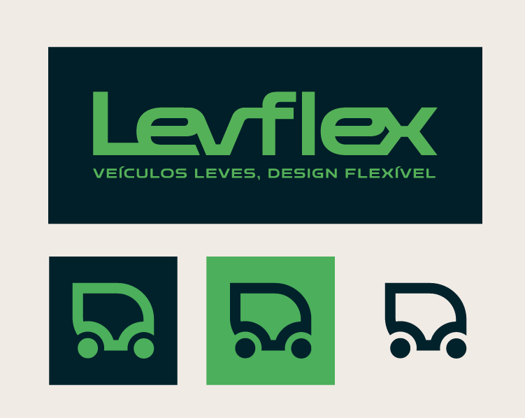 A partir dos pilares da LEVFLEX, desenvolvemos um símbolo que integra três dimensões essenciais: a dinâmica de um veículo em movimento, a compacidade dos novos modelos urbanos e a lógica inteligente que impulsiona soluções híbridas sustentáveis.